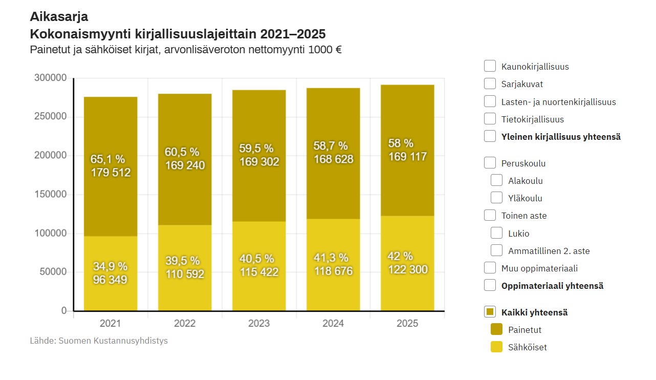 Olemme kirja- ja oppimateriaalikustantajien yhteistyö- ja edunvalvontajärjestö. Edistämme kirjallisuuden levitystä, lukemisharrastusta sekä sananvapautta.